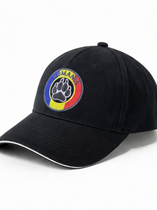 Șapcă neagră unisex România, design tricolor, aspect brodat, reglabilă, stil casual