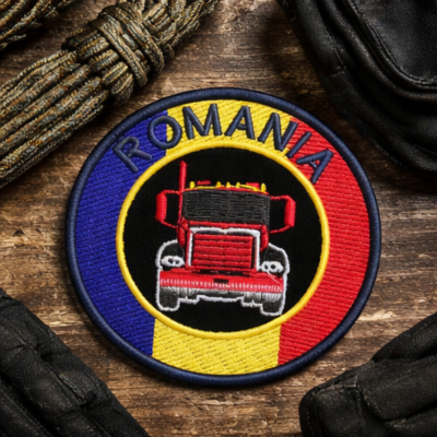 Patch Brodat Camion România – Emblemă Truck cu Steagul României