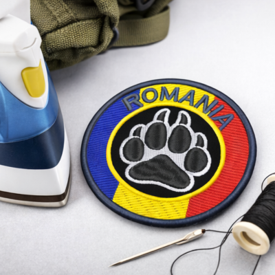 Patch Brodat România – Labă Urs / Animal cu Steagul României