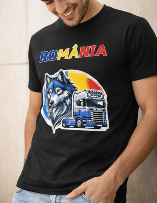 Tricou România Lup Dacic și Camion – Tricou pentru Șoferi