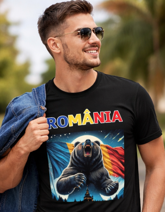 Tricou România cu Urs și Steagul României – Tricou Print DTF