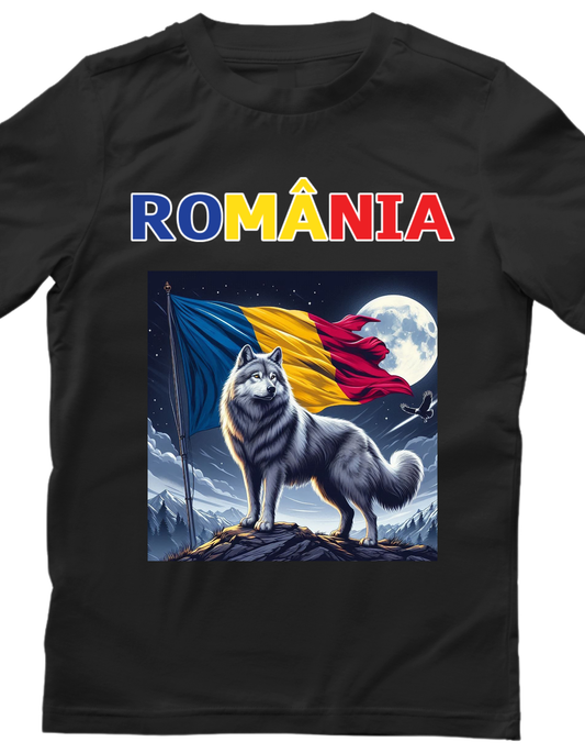 Tricou România cu Lup și Pui de Lup – Tricou Print DTF