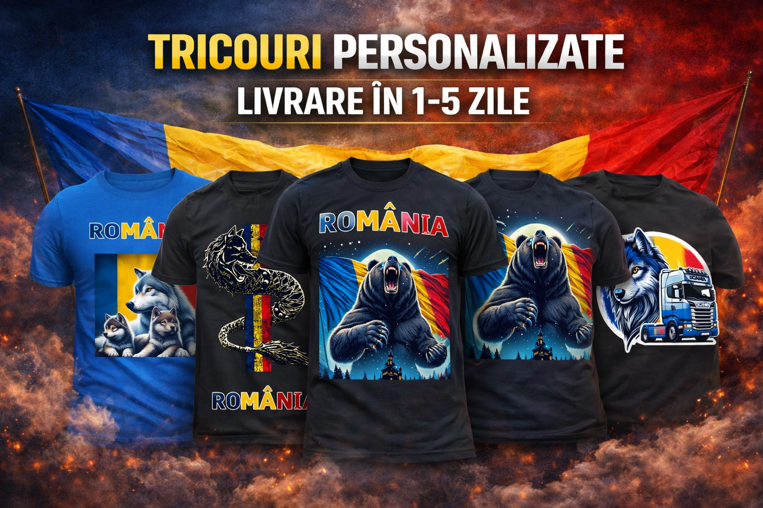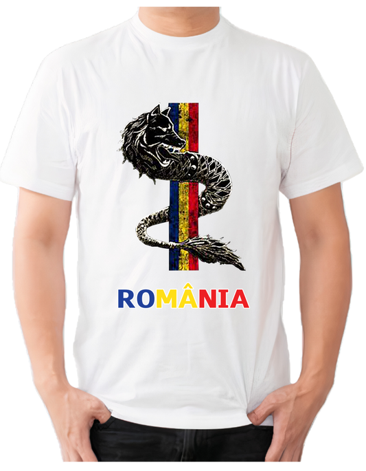 Tricou România Lup Alb – Tricou cu Steagul României (Print DTF)
