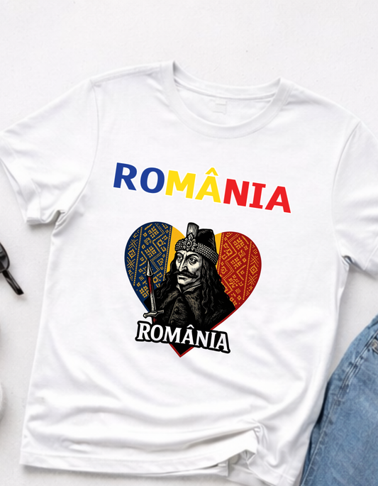 Tricou România cu Vlad Țepeș – 100% Bumbac, Print DTF Premium